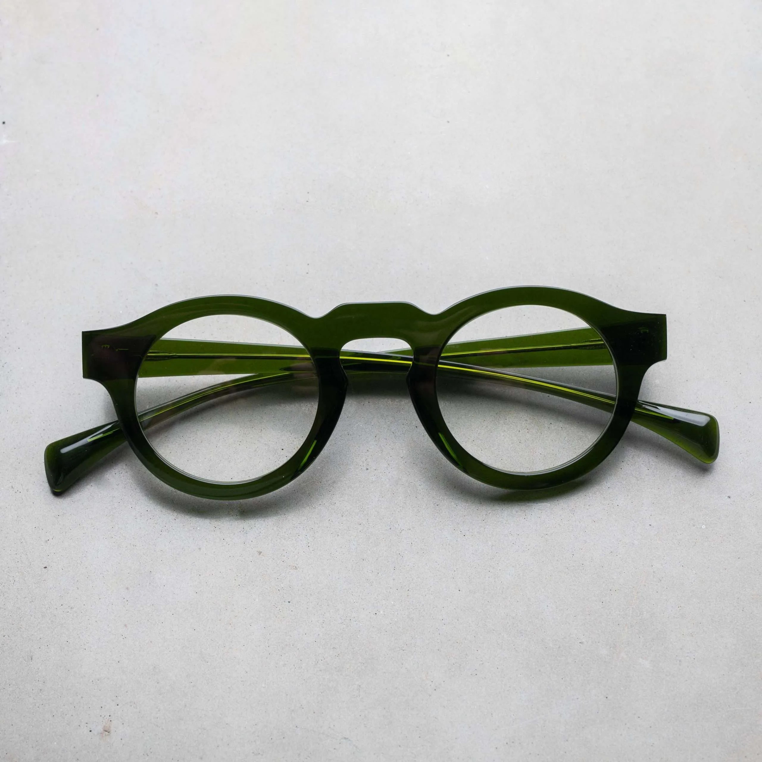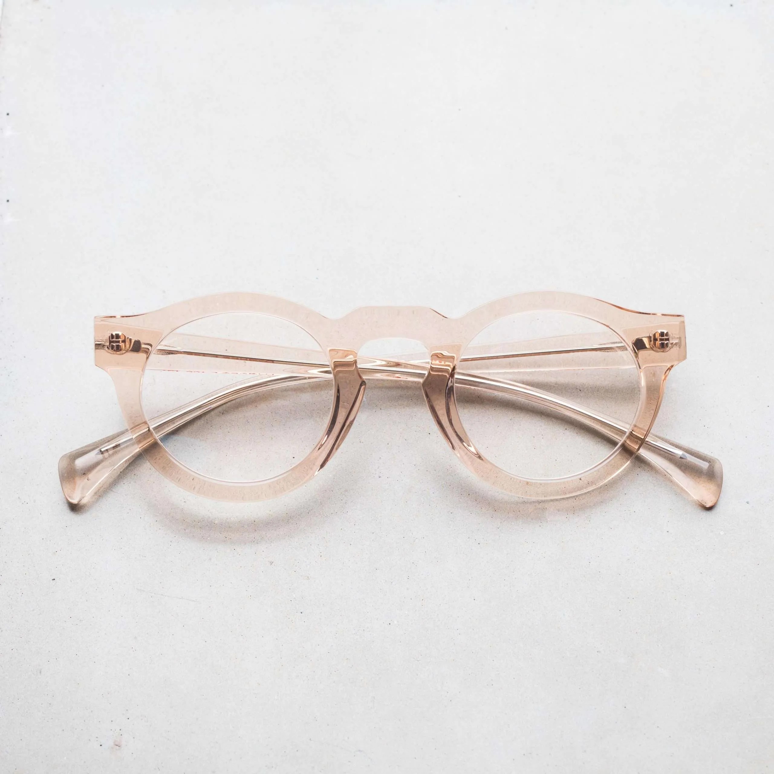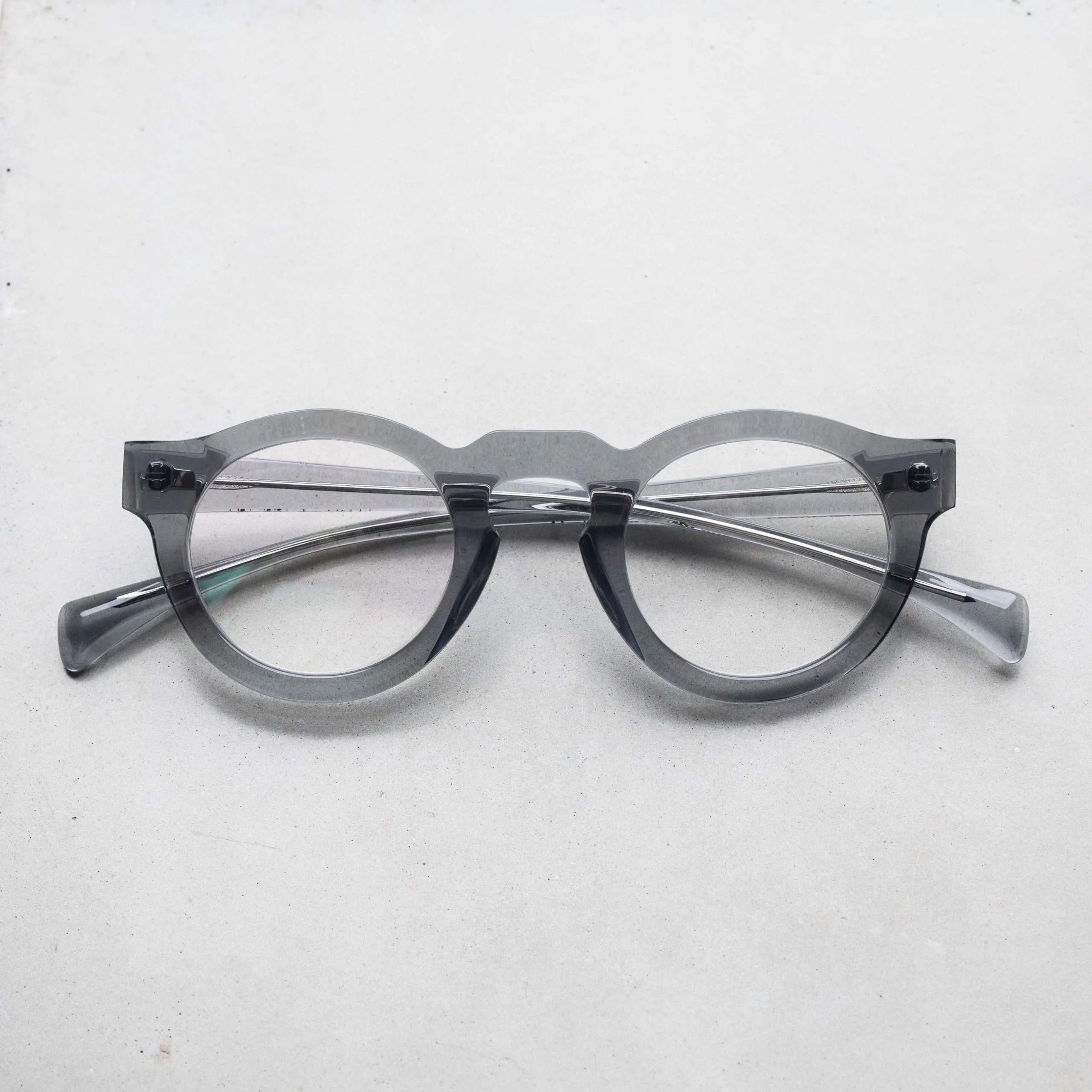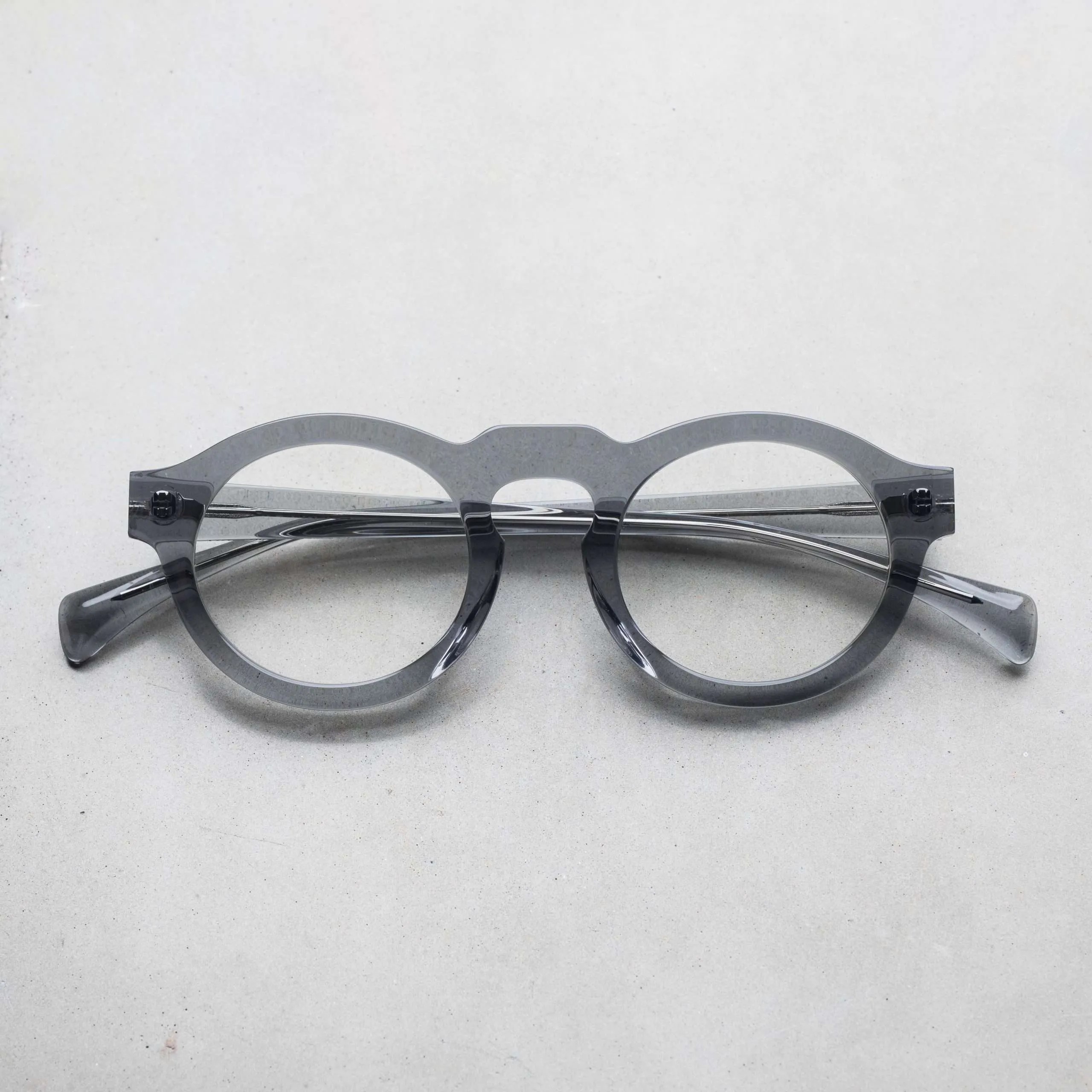 ブランドを代表する”106″を日本向けにリサイズしたモデル。レンズを少し横に引き伸ばし、ブリッジを高めに位置した、ボストンをベースとしたオーバルライクなデザイン。