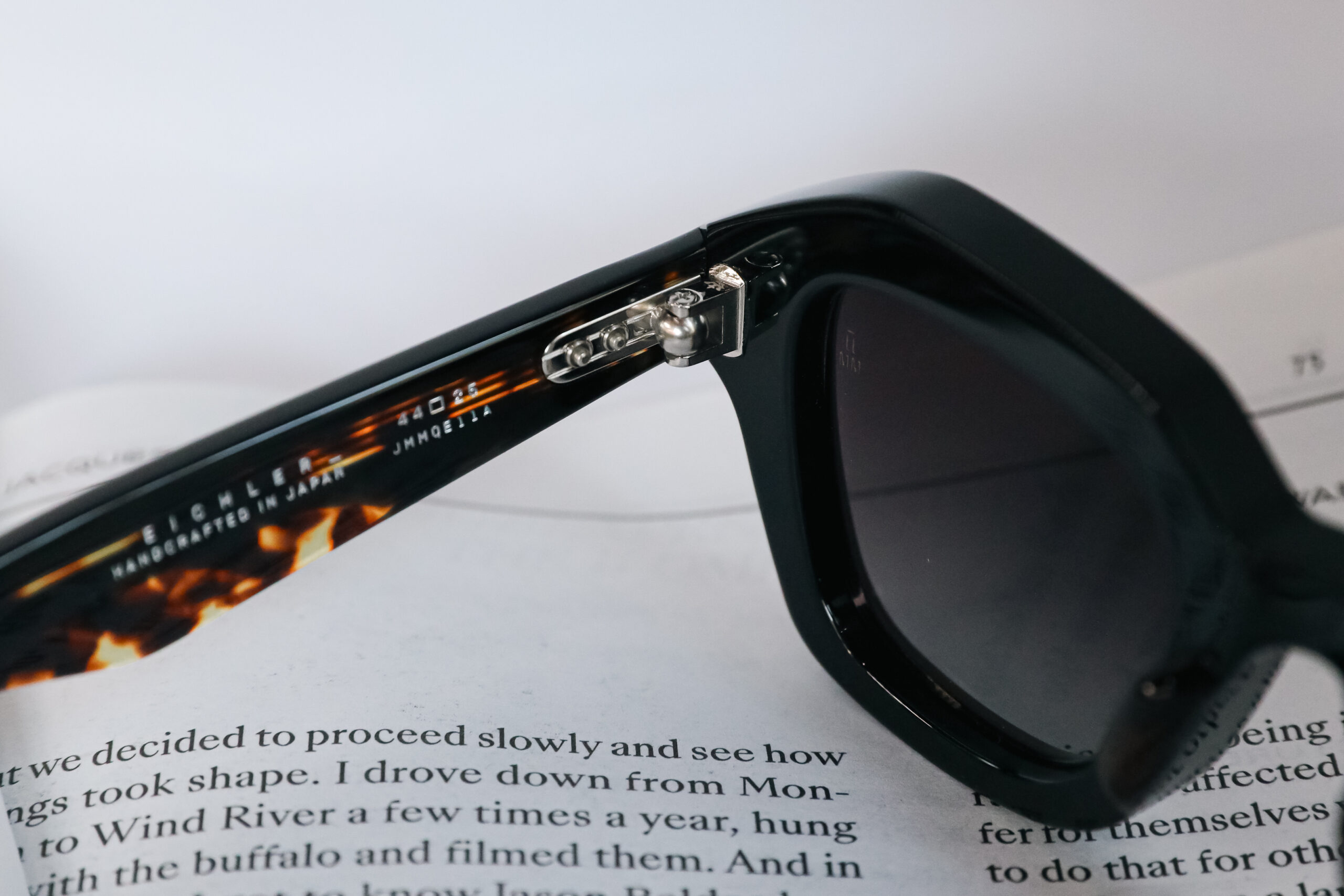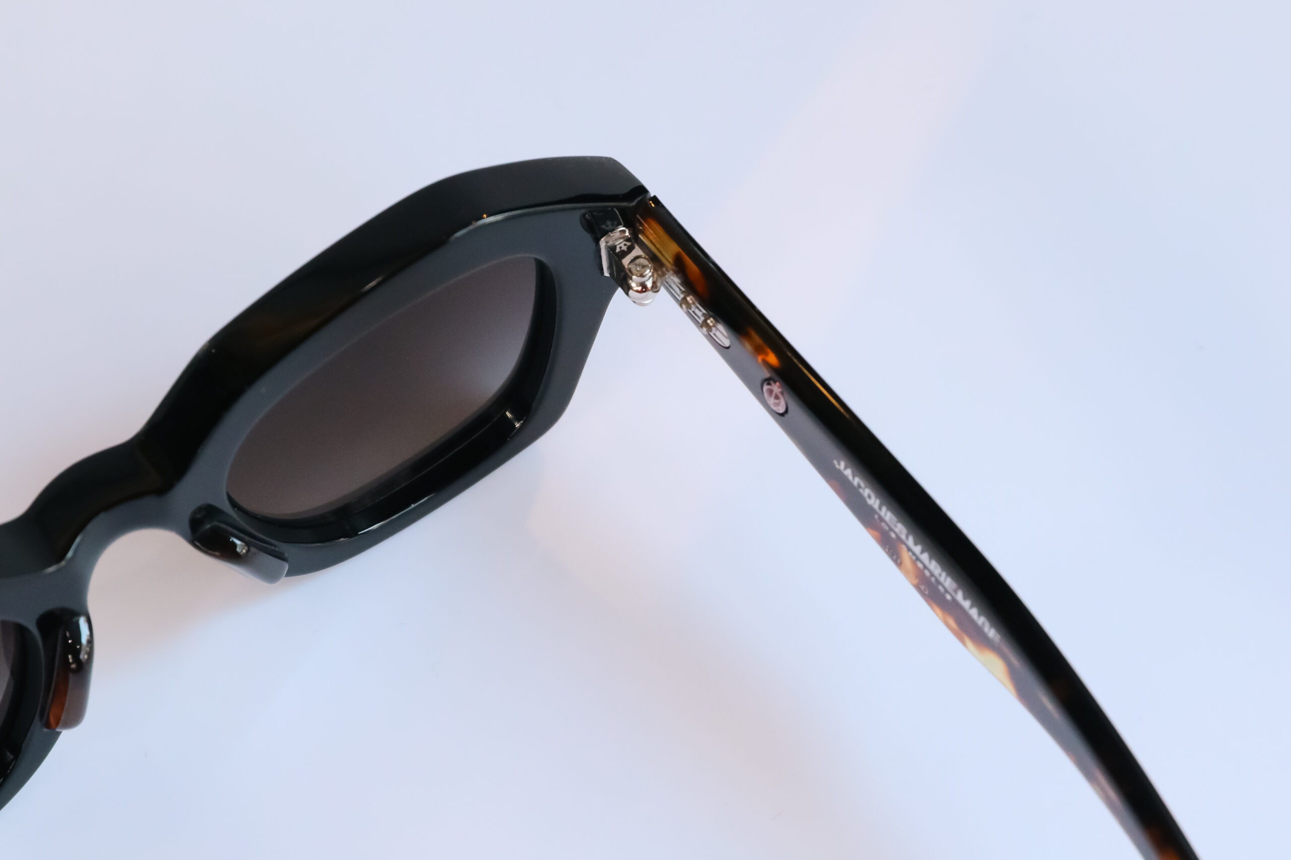 テンプルは黒 × 鼈甲を貼り合わせたJMMらしい存在感のある生地とボリューム。