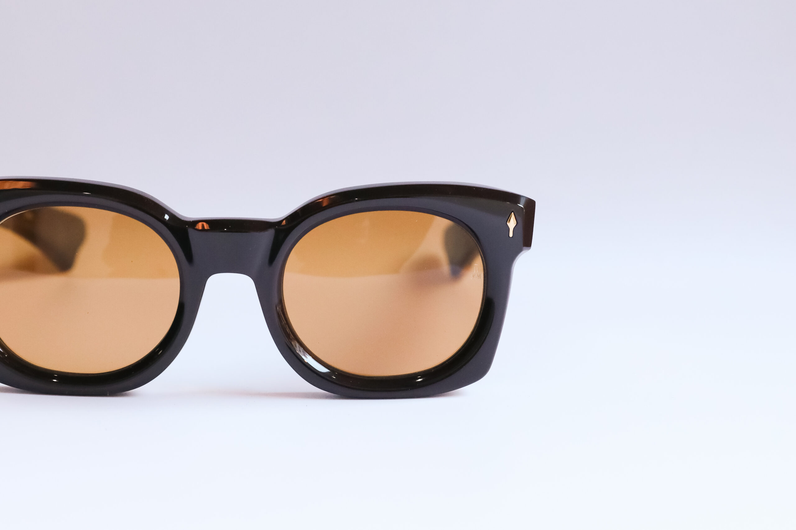 肉厚なアセテート生地を使用しつつ、エッジ部分には丁寧なベベル(面取り)加工を施すことで、重さだけでなく陰影を感じさせる立体的な表情を生み出しています。