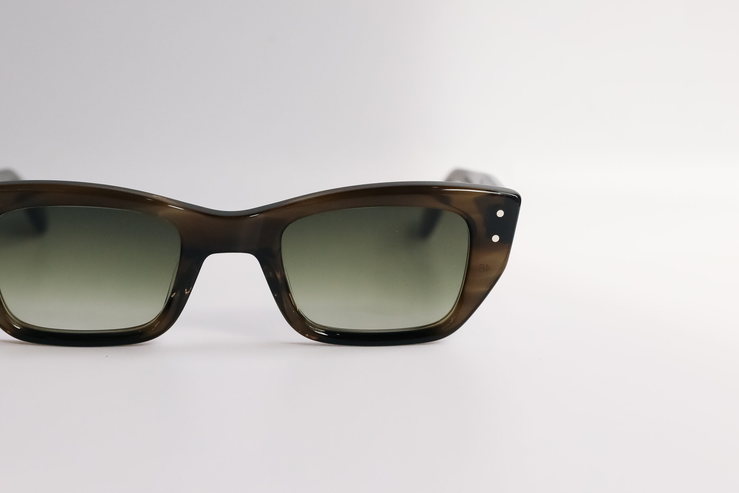 ・リムサイドはスクエアに。角を効かせることで、輪郭にシャープな骨格感をプラス。