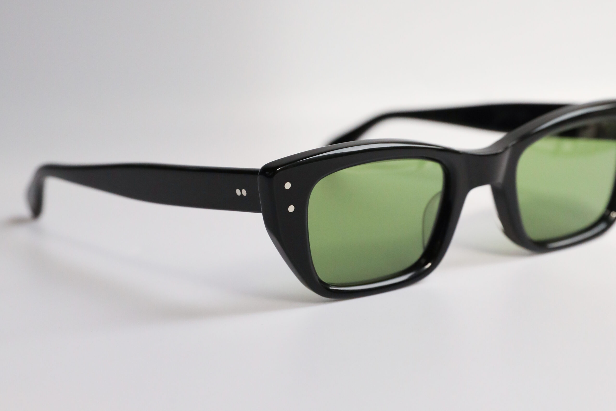 王道のブラックフレームに、深みのあるグリーンレンズ。