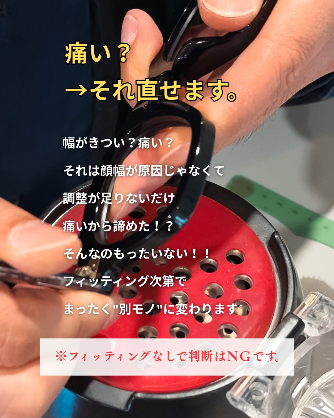 かけ心地はフィッティング次第で まったく”別モノ”に変わります。