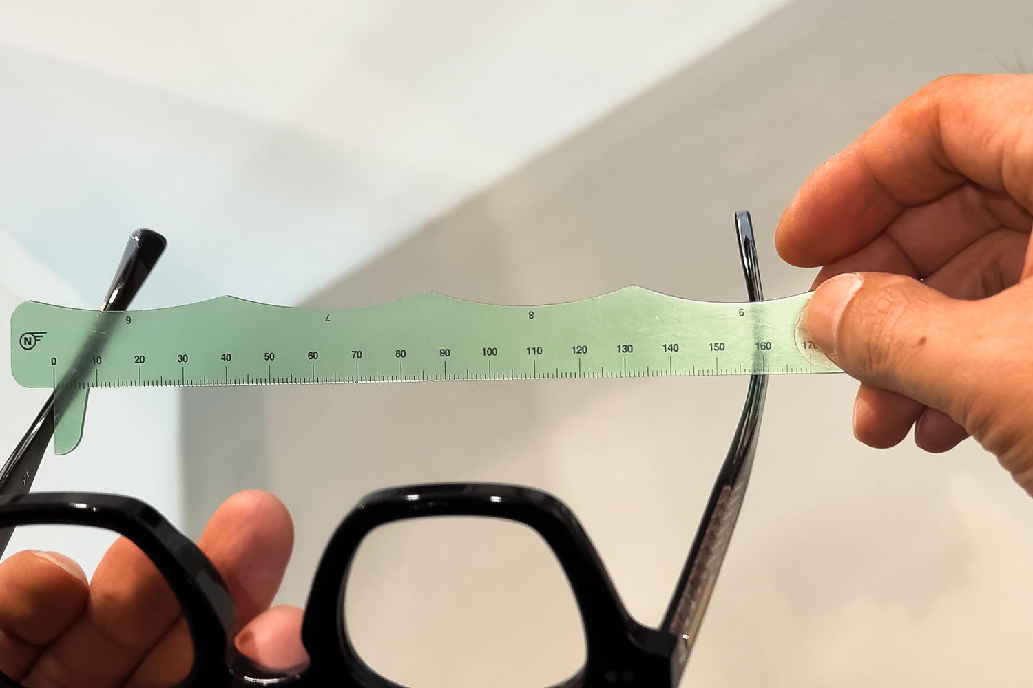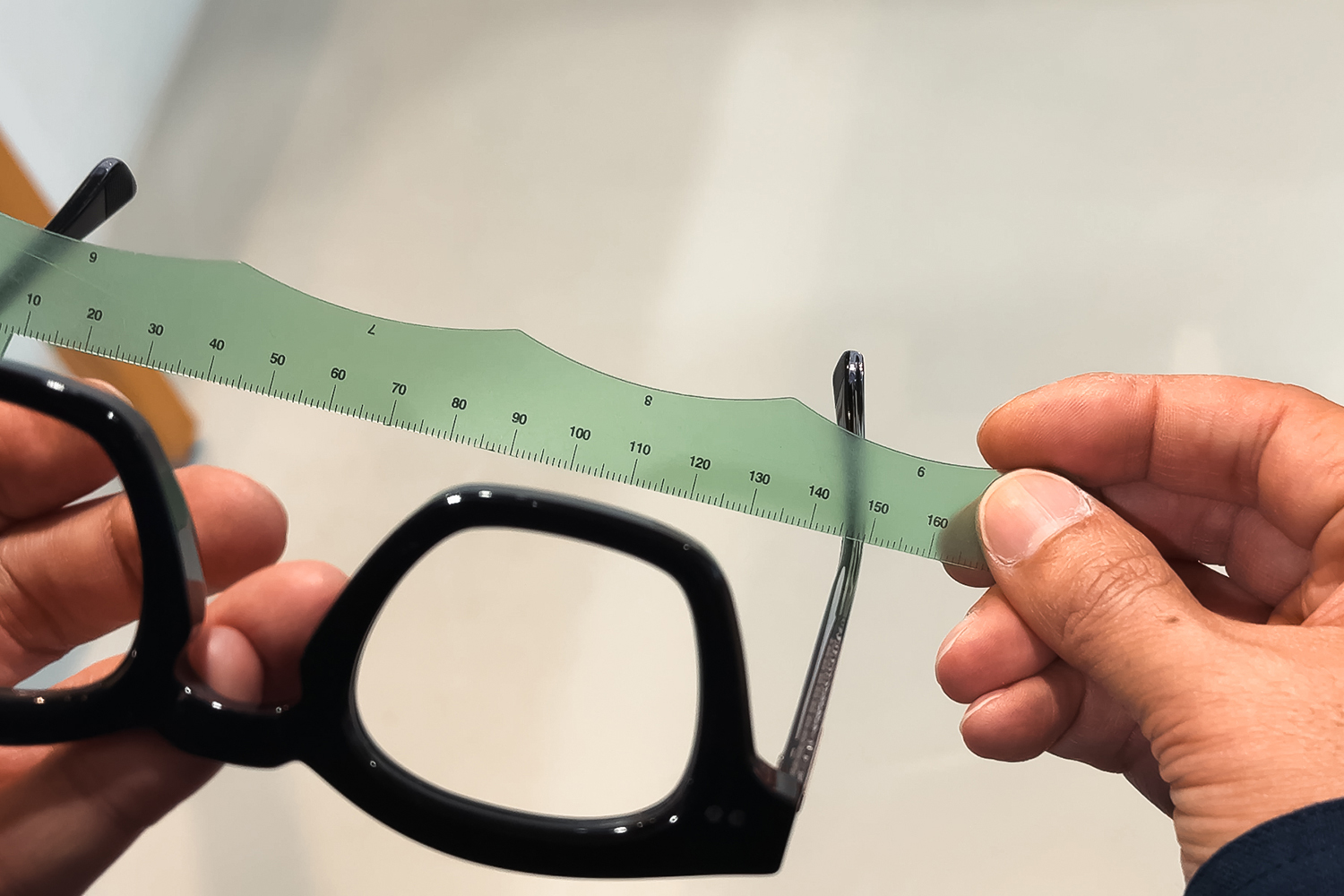 メガネは調整できるので、お顔幅に合わせてフィット感を変えられます。