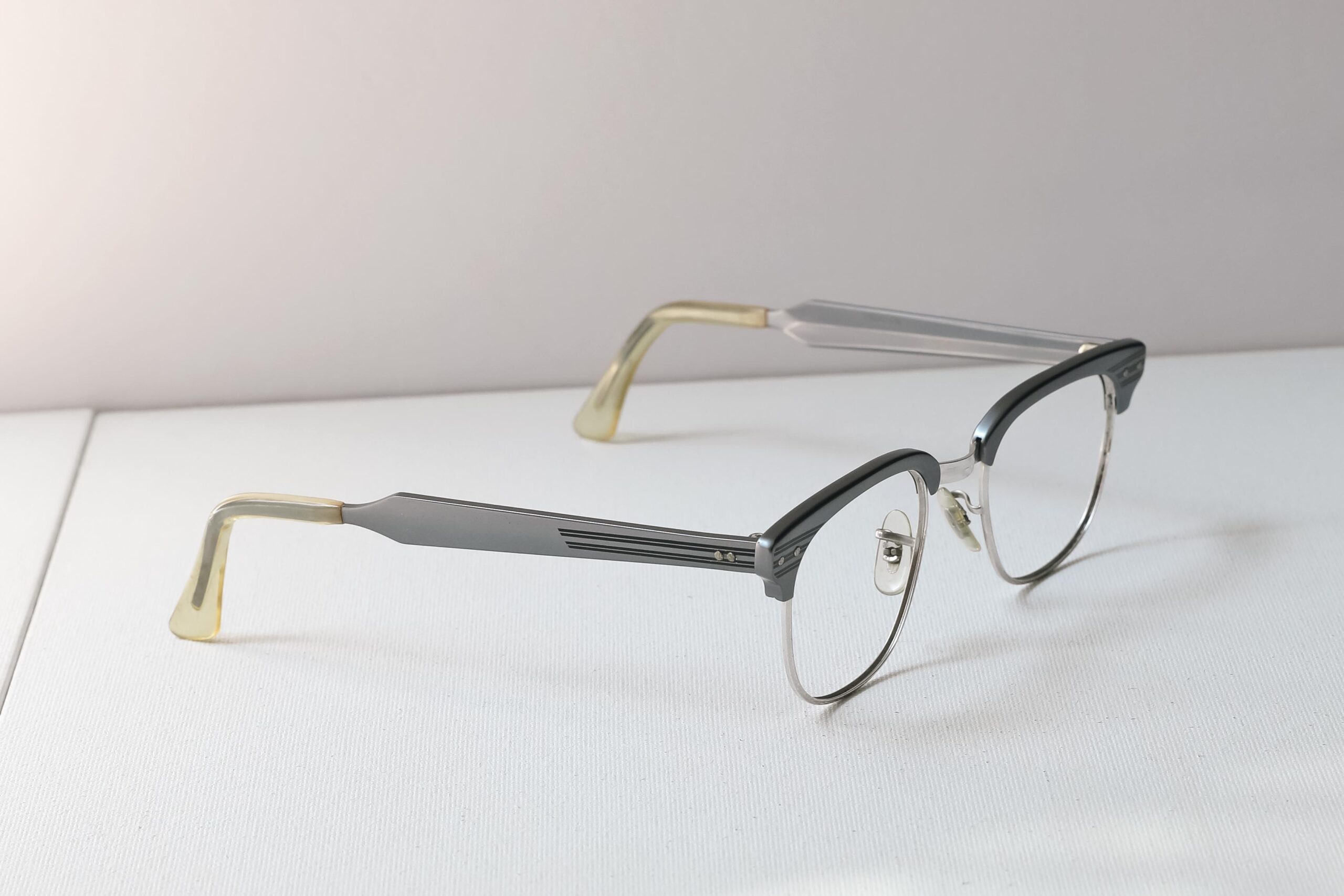 やがて Hudson Optical は、セーフティグラス(保護眼鏡)の分野に進出し、2021年にはアメリカ最初期のフレームメーカーと呼ばれる ArtCraft Optical に継承されました。 アメリカン・アイウェアの歴史を今に繋ぐその系譜の中で、このフレームは初期の輝きと革新を色濃く物語っています。 知的で端正な表情をつくるクラシックなシルエットに、希少なアルミブローの質感が加わった、唯一無二のヴィンテージ。 コレクターズアイテムとしても、日常のスタイルに洗練を添える一本です。