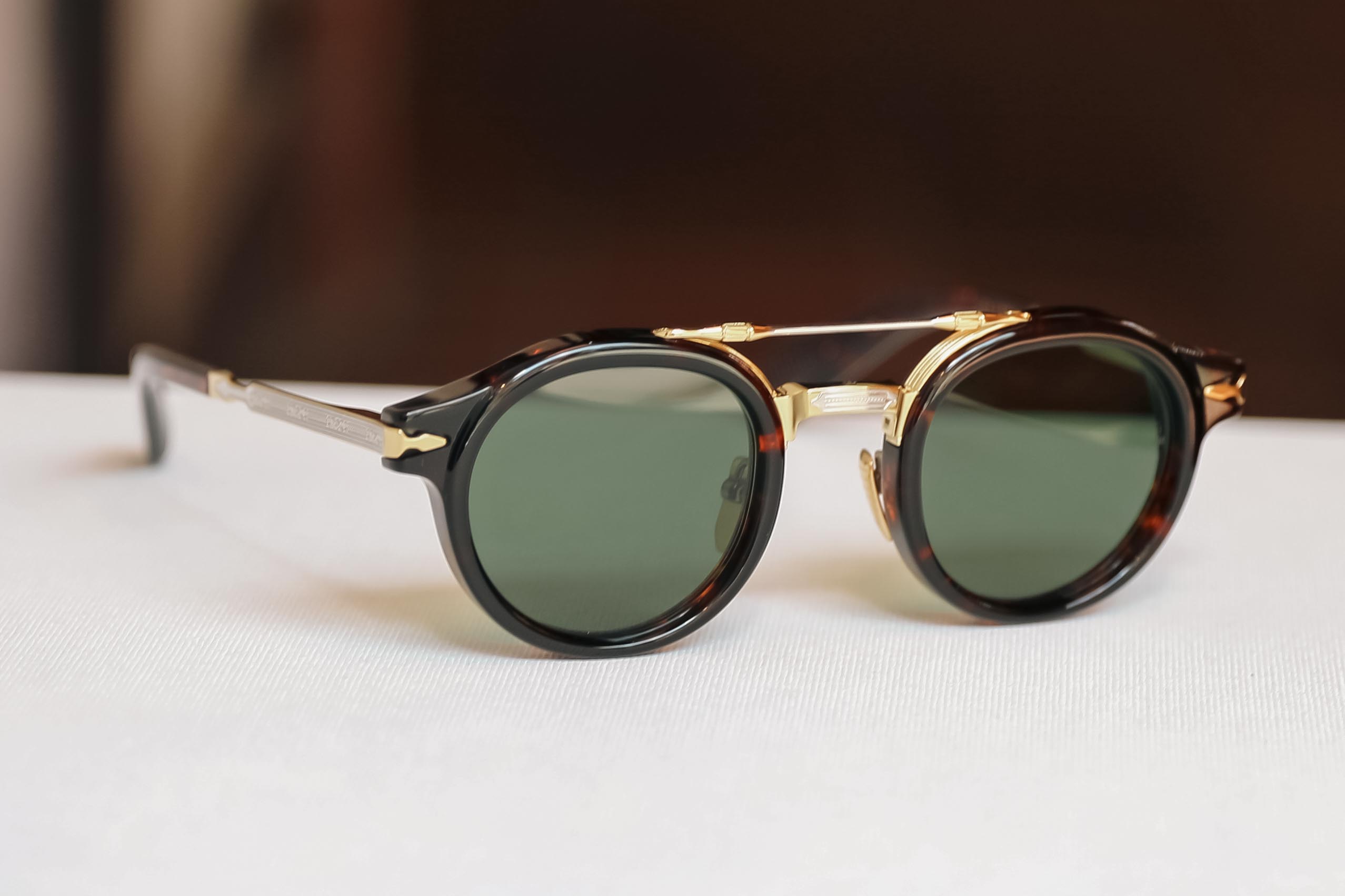 クラシックなラウンドに近いボストンシェイプに、50年代に着想を得たツーブリッジのコンビネーションデザイン。