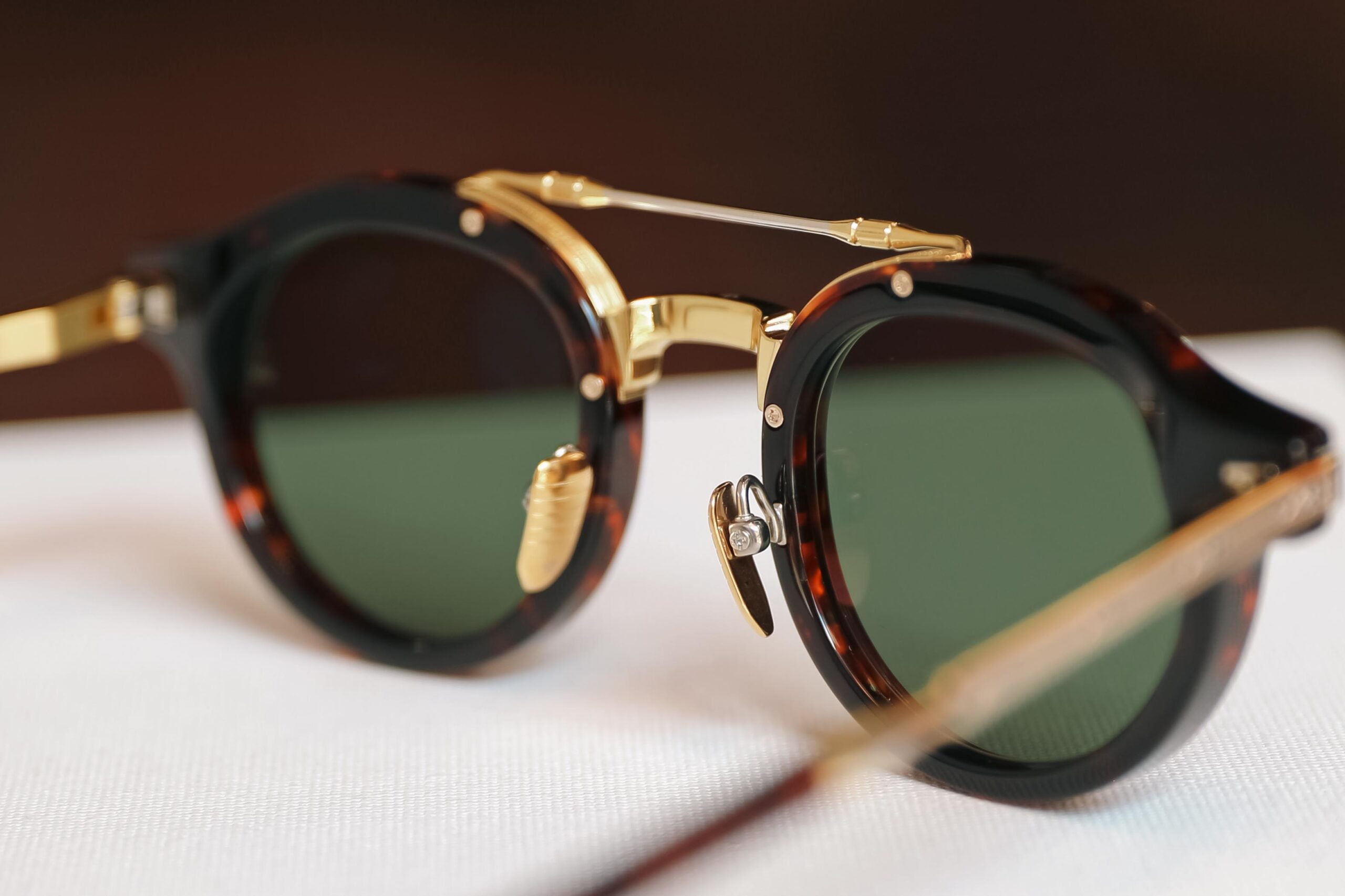 クラシックなラウンドに近いボストンシェイプに、50年代に着想を得たツーブリッジのコンビネーションデザイン。