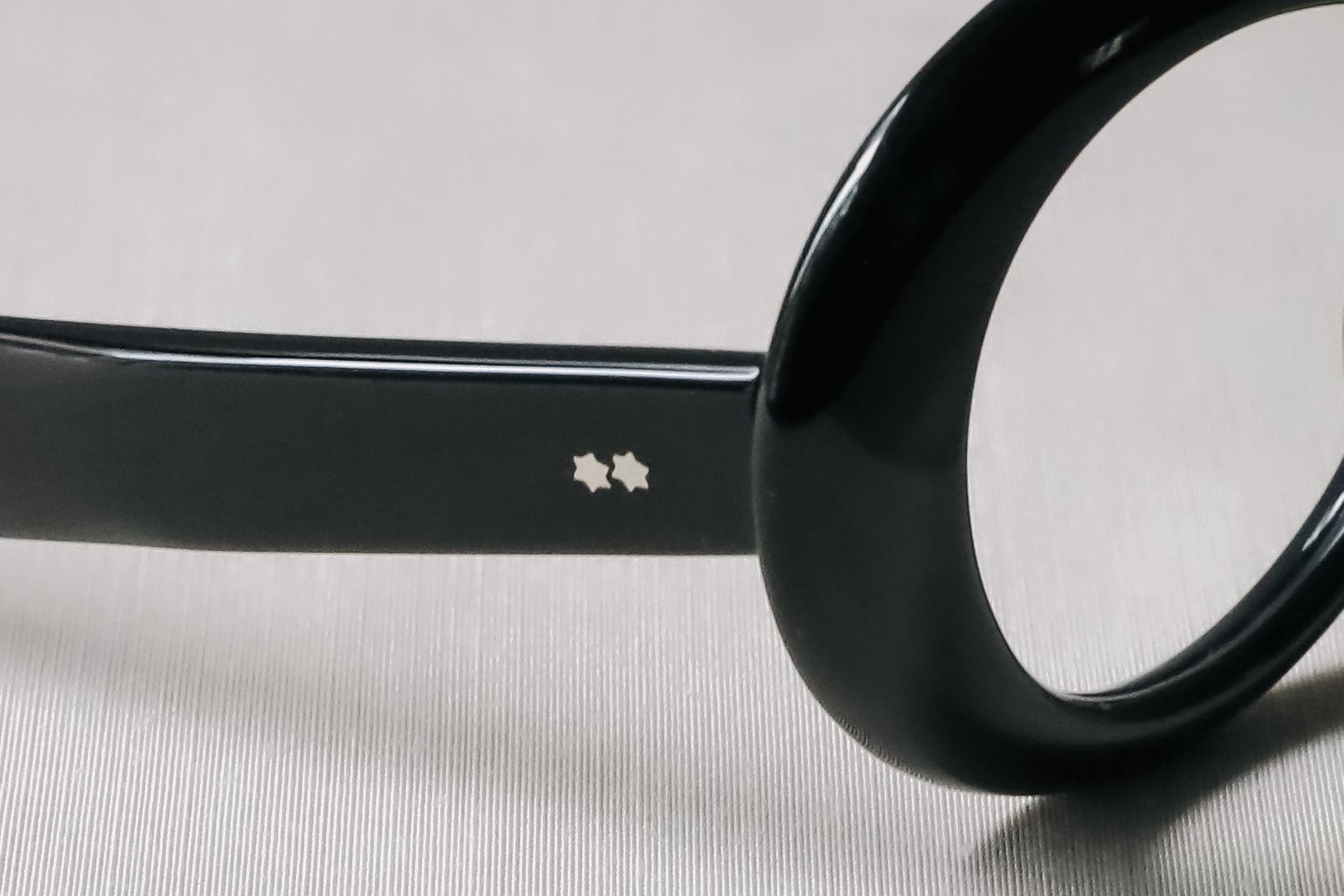 テンプルには星型鋲がアクセントになり、アイコニックなフレームとの相性抜群です。