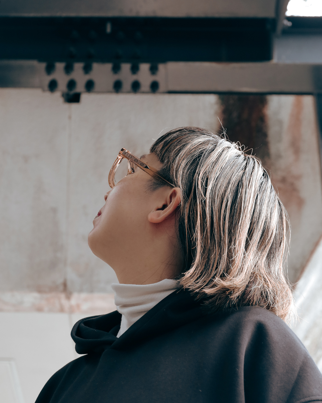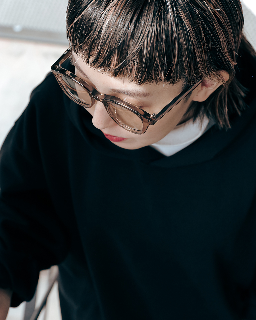 黒縁を卒業して、少し光を取り込む。顔周りに色味を足す。
