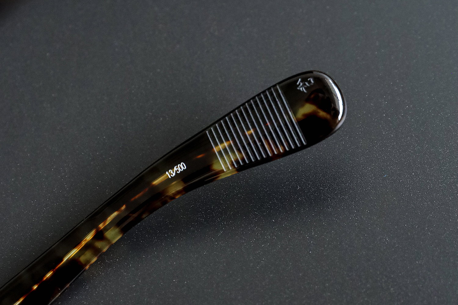小ぶりで落ち着いたフォント。モデル名やシリアルを丁寧に刻むことで、“誠実な記録”として残す。