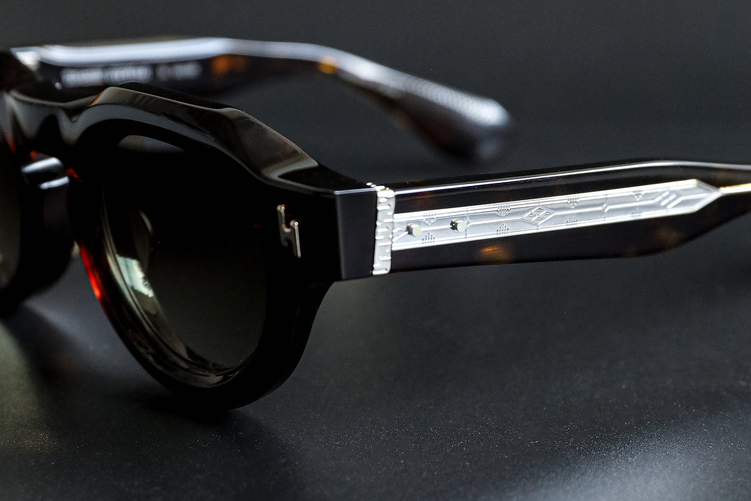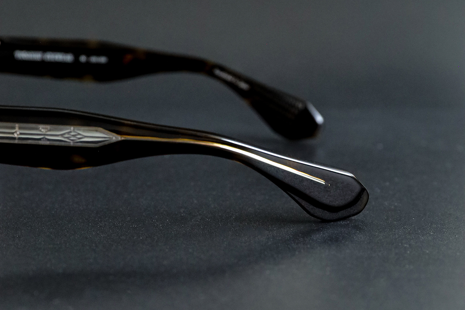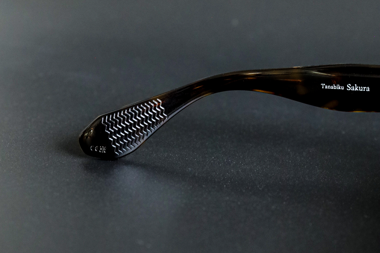 テンプルに流れるように刻まれた装飾は「霞」をイメージ。