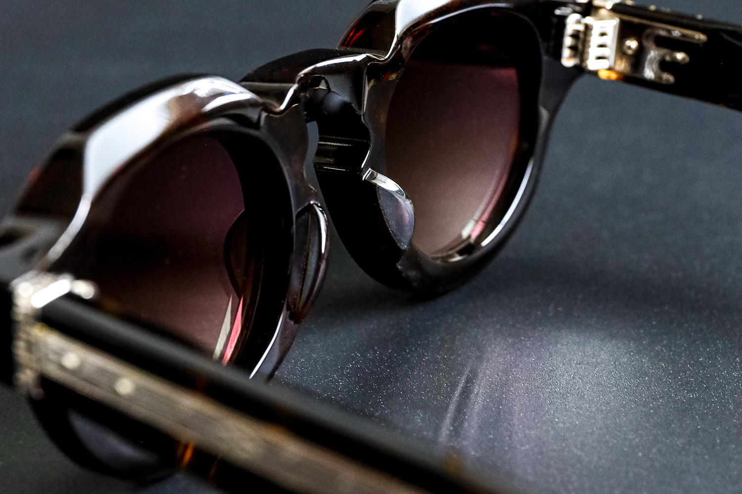 同じ“極太セルフレーム”を出発点としながら、ここまで違う表現を示す二つのブランド。