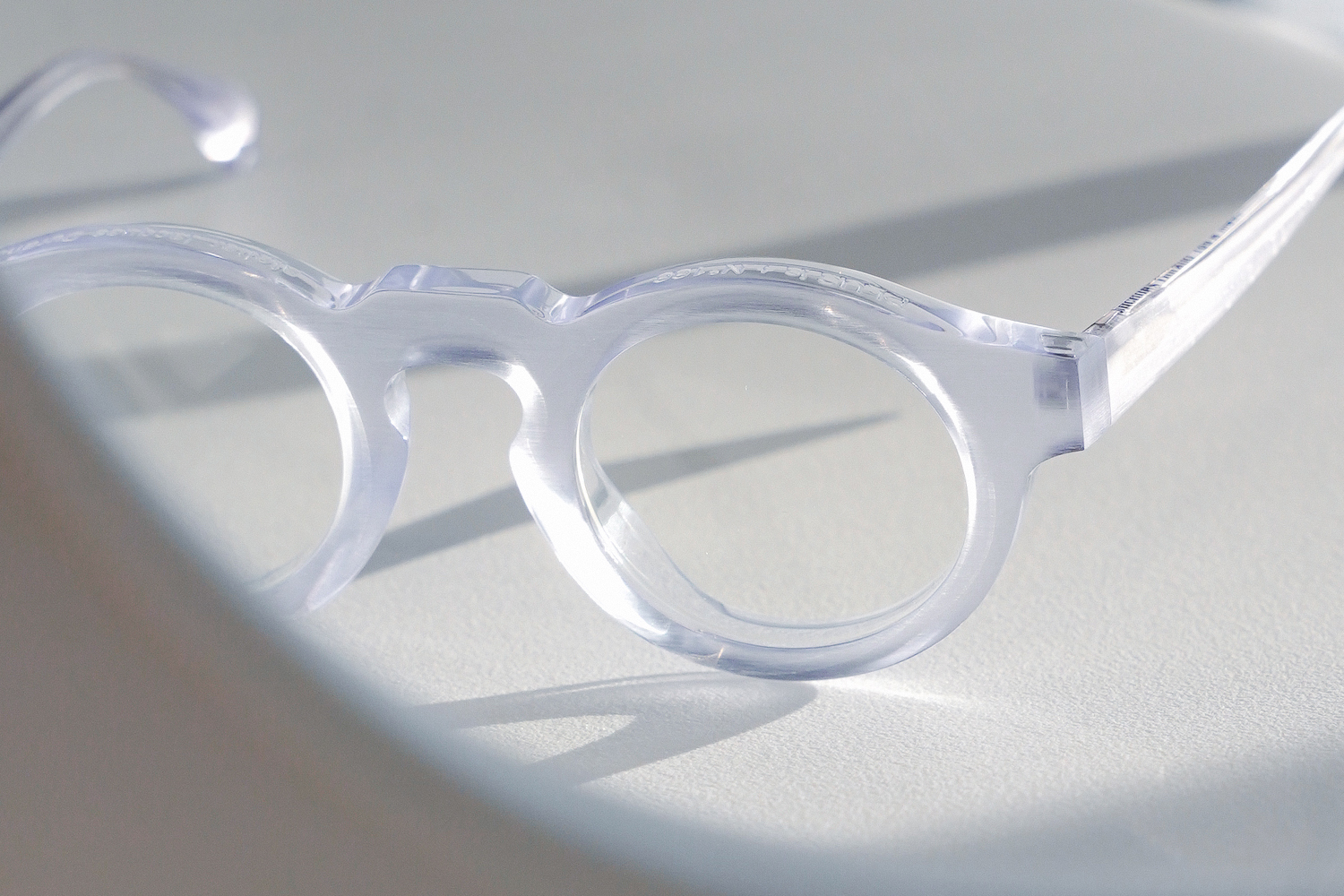 ベースモデル Paques 106 を厚みのあるアセテートで再構築した一本。